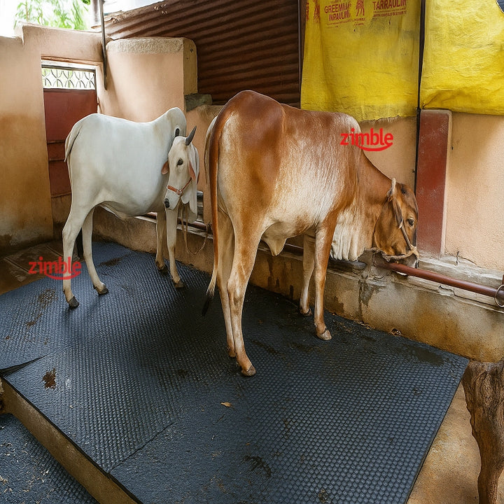 The Zimble 5x8 ft Cow Mat is designed for both cows and buffalo in dairy farms and sheds.